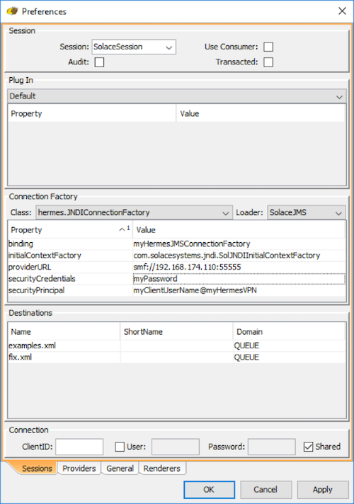 Step 1. Right-click on jms/sessions tree node in the "Sessions" area and select New.../New session... Call it "SolaceSession". Make sure to uncheck Use Consumer and Transacted.