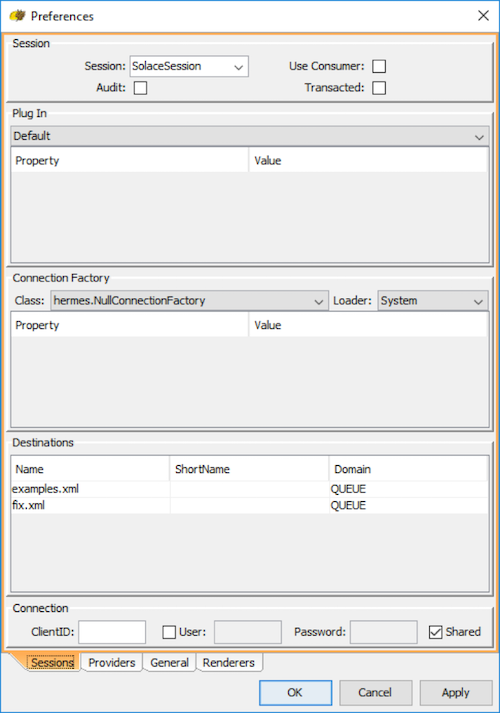 Step 6. Switch to the Sessions tab to start configuring the ConnectionFactory.